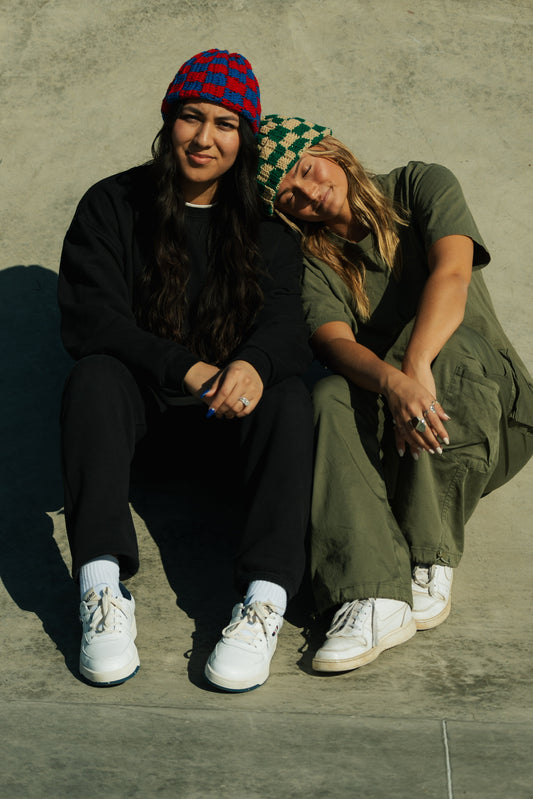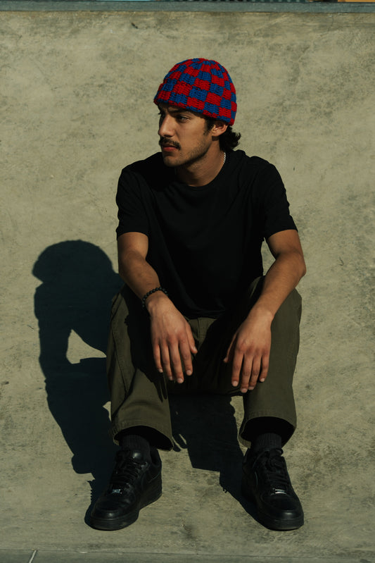 Checkered Beanie: Red and Blue