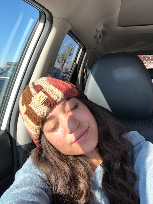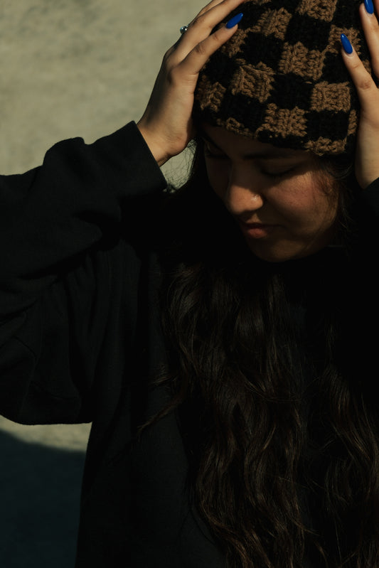 Checkered Beanie: Brown and Black