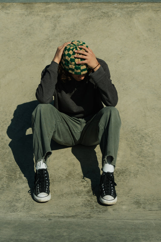 Checkered Beanie: Green and Tan